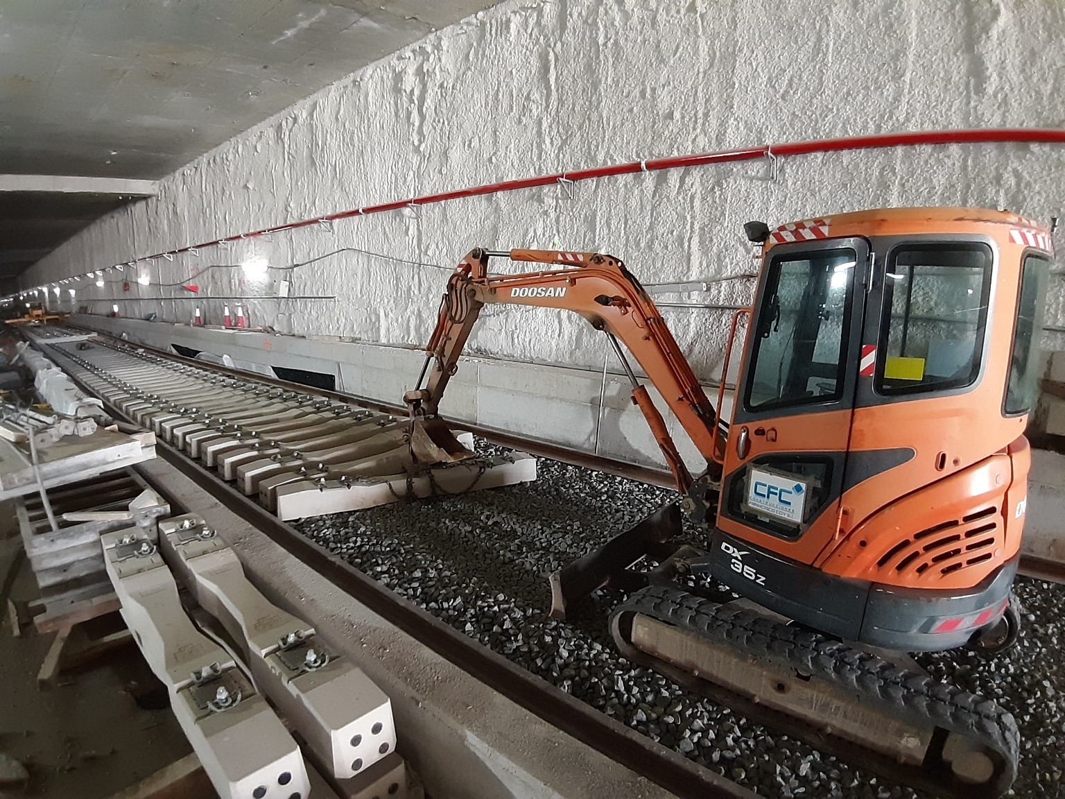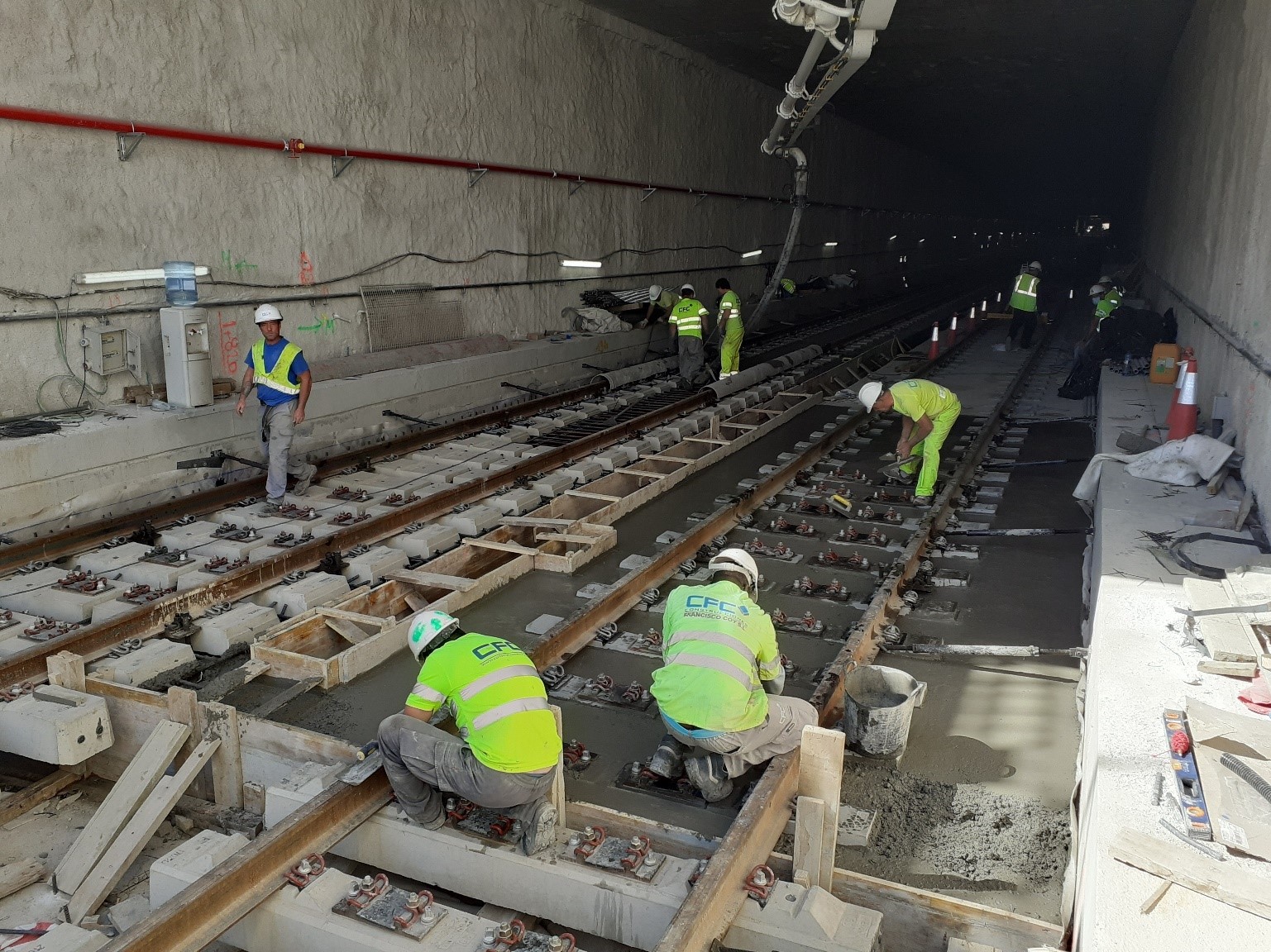 HORMIGONADO DE VIA EN PLACA, MURETES DE CONTENCION EN SALIDAS DE TUNEL, MINTAJE DE VIA EN BALASTO EN RAMPAS DE TUNEL.
